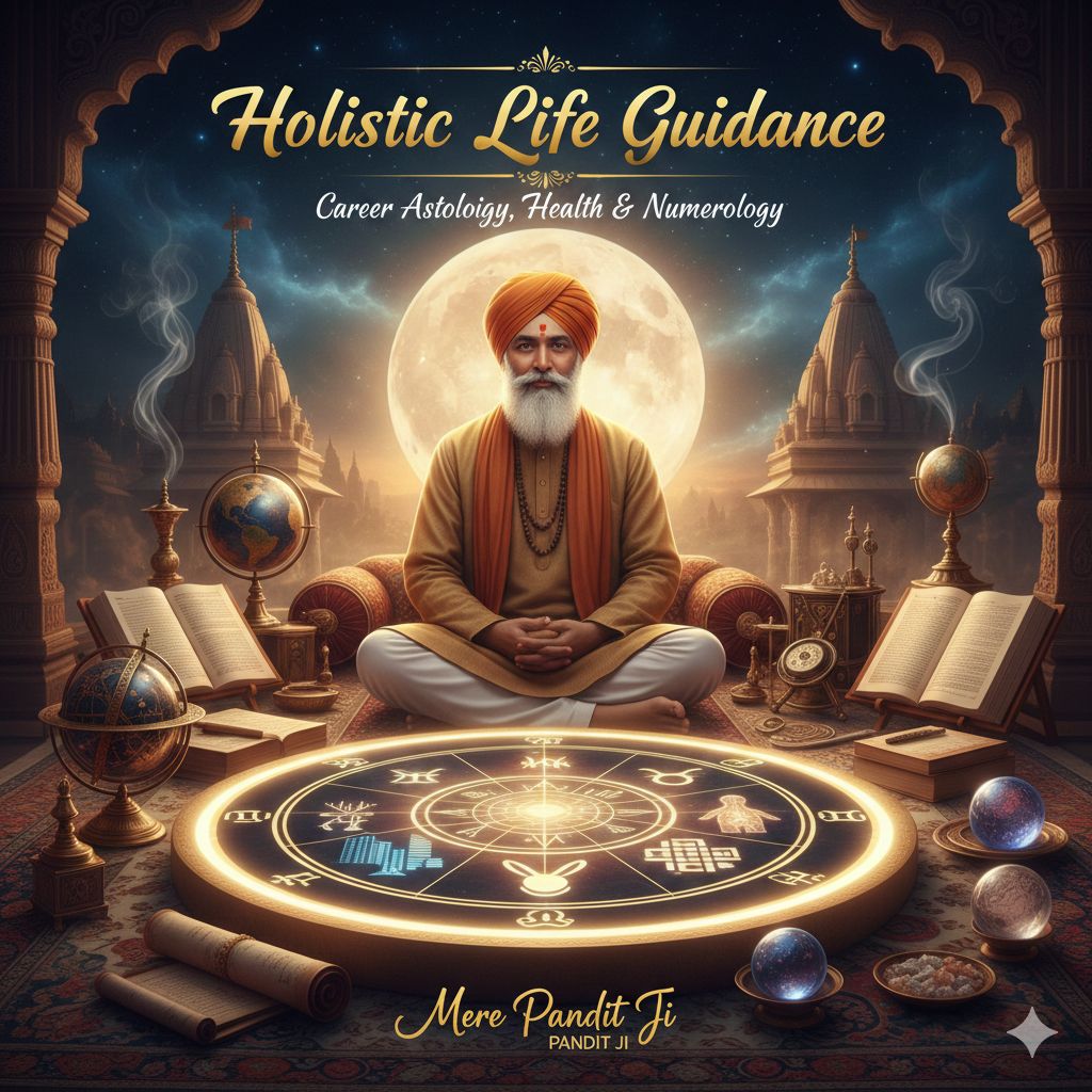 "Master your destiny. ✨ Career, Health, and Numerology insights tailored for you by Mere Pandit Ji. Let the wisdom of the ages guide your modern life."
